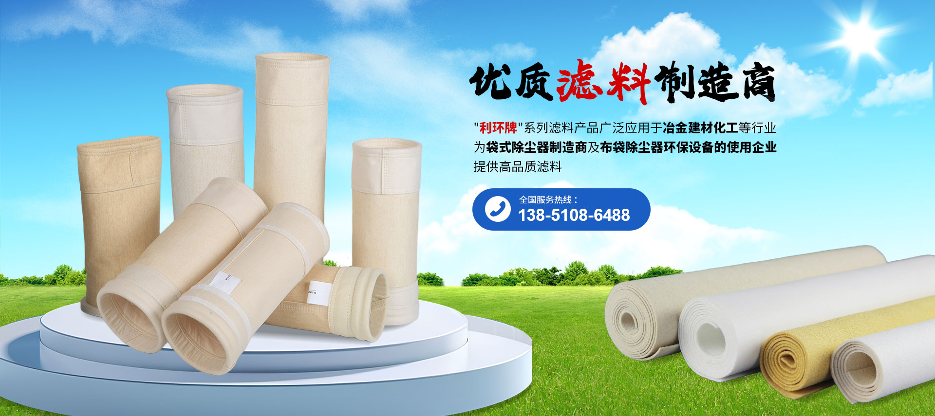 公司自主研发的"利环牌"系列滤料产品。在冶金建材化工等行业,享有声誉,赢得市场,部分产品出口到越南,意大利等 ,为袋式除尘器制造商及布袋除尘器环保设备的使用企业提供高品质的理想滤料。公司一贯秉承"用户至上,双赢发展,厚德致远"营销理念,为祖国环保事业贡献出自己的力量,让我们美丽家园共同拥有一片蓝天。